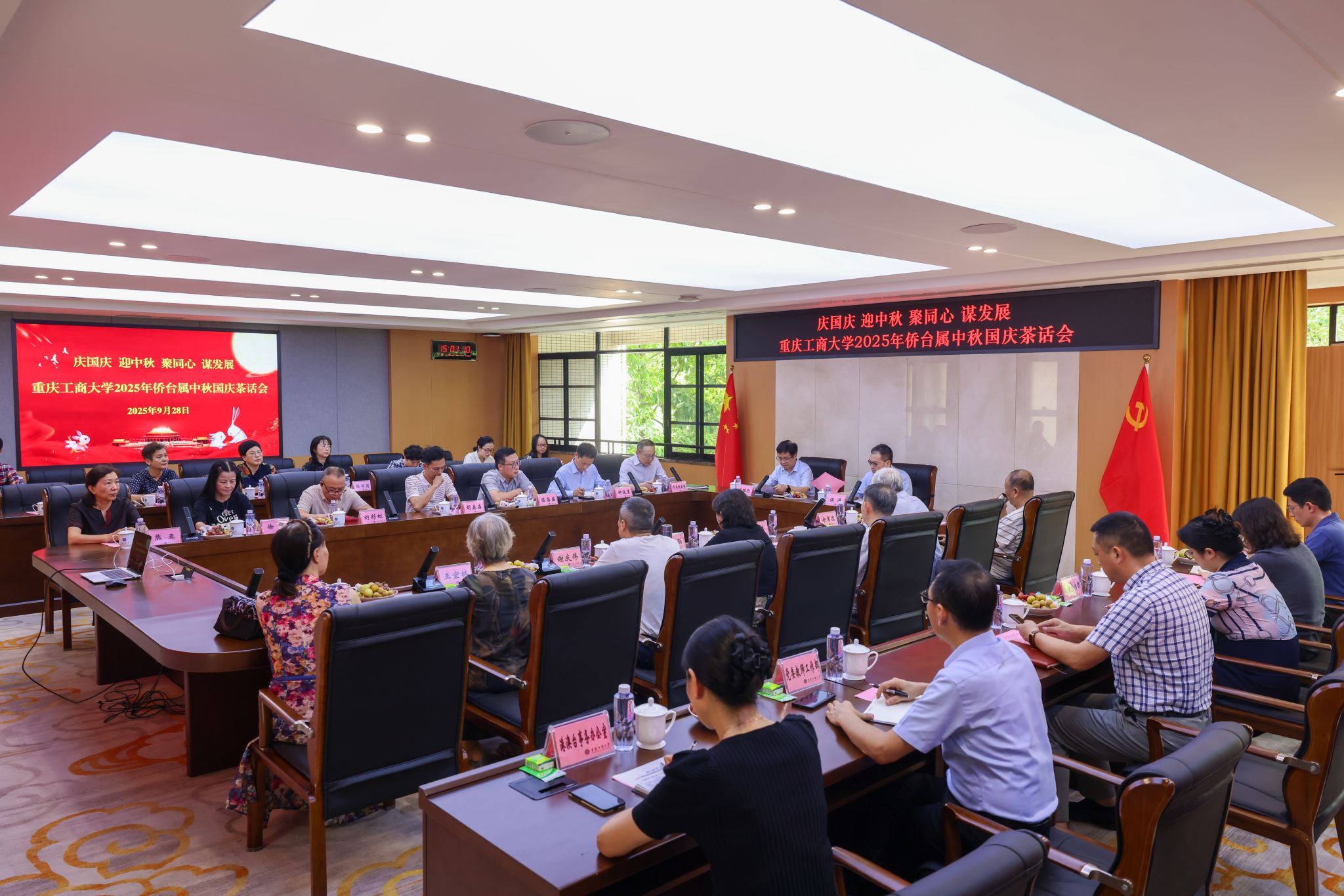 9月28日下午,我校在厚德楼3019会议室召开“ 迎中秋 庆国庆 聚同心 谋发展——重庆工商大学2025年侨台属中秋国庆茶话会”。校党委书记曾维伦,校长温涛;党政办公室、党委组织部、党委宣传部、党委统战部、党委离退休工作部、党委教师工作部、港澳台事务办公室等部门负责同志,以及20余名侨台属代表参加了会议。会议由校党委常委、统战部部长华杰主持。